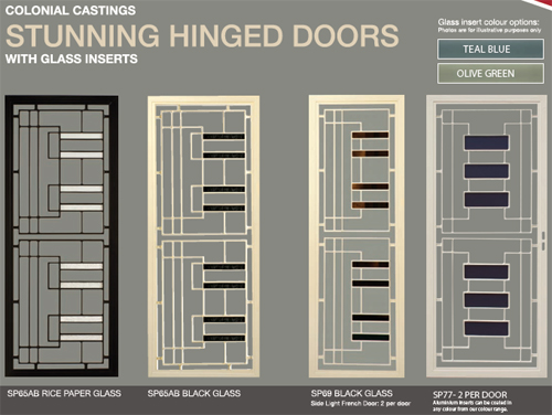See the latest designs > http://www.colonialcastings.com.au/wp-content/uploads/2021/09/safety_screen_doors_grills_doricbranding_2021_low.pdf